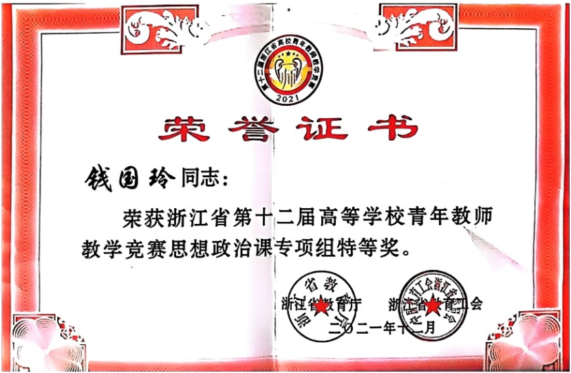钱国玲,法学博士,现德法教研室教师,讲授《思想道德与法治》、《医学伦理学》等课程。其中,《思想道德与法治》入选2007so太阳集团2022年度校级“一流本科课程”,《医学伦理学》入选2022年省级课程思政示范课,校级思政教育精品育人工程。先后在《浙江大学学报》、《人大复印报刊资料》、《现代出版》等期刊发表论文10余篇,出版专著1部、编著1部、参编省级规划教材1部。主持省部级课题2项、校级课题5项。