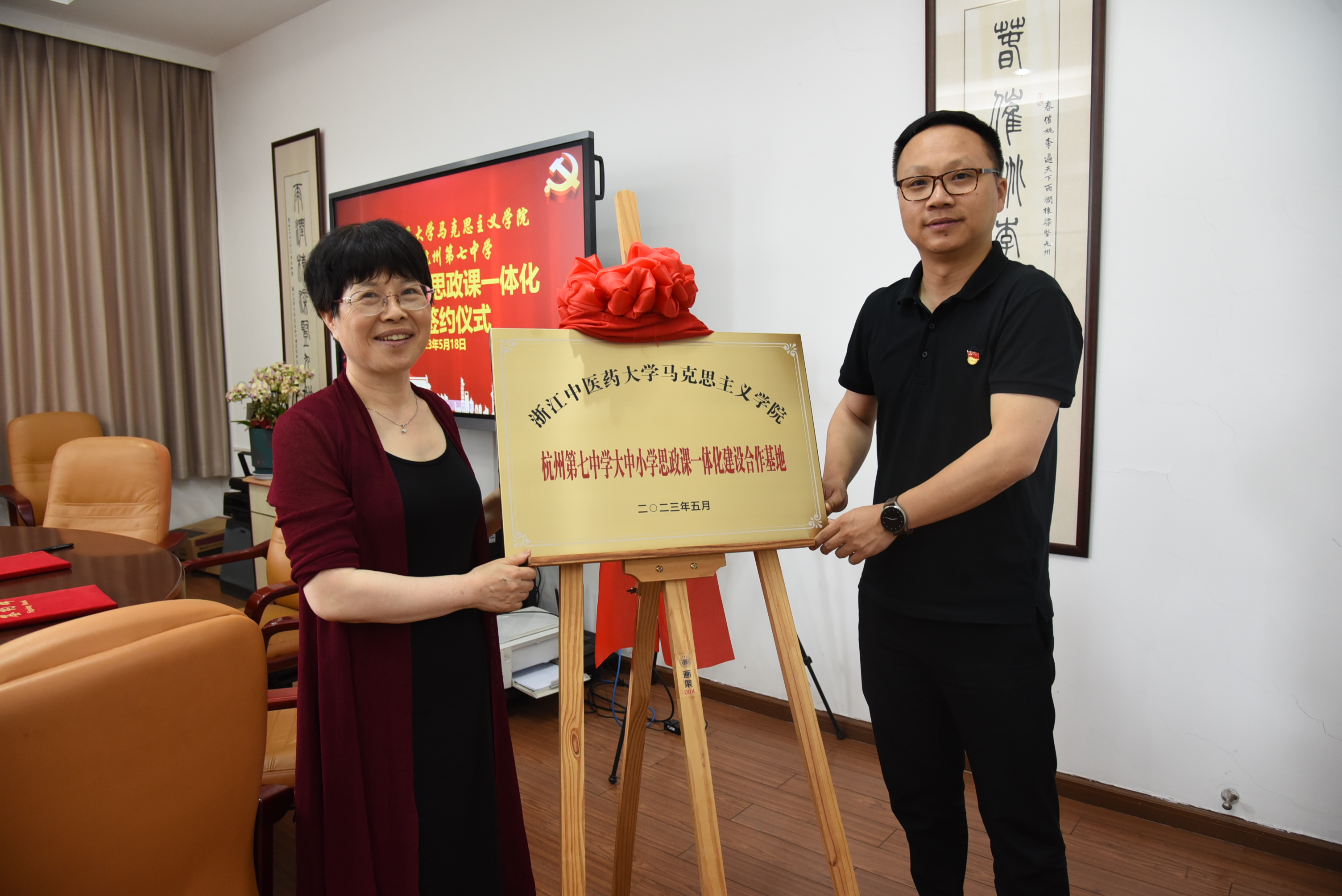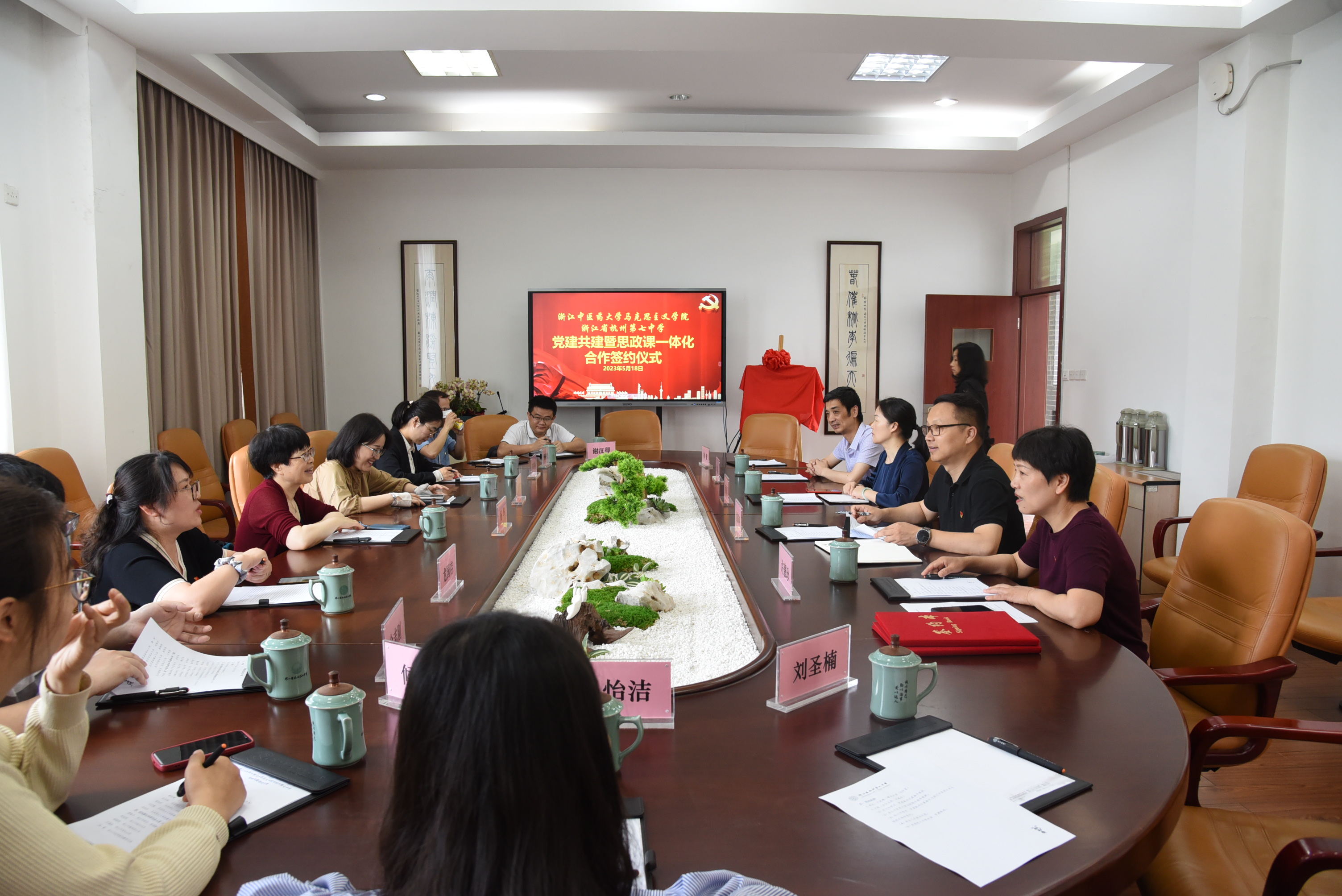 为贯彻习近平总书记关于思政课建设的重要论述,积极落实教育部、中宣部等十部门《全面推进“大思政课”建设的工作方案》和教育部办公厅《关于开展大中小学思政课一体化共同体建设的通知》等文件精神,推动思政课建设内涵式发展,切实增强思政课的针对性、有效性。5月18日上午,2007so太阳集团与杭州第七中学在杭七中转塘校区举行了“大中小学思政课一体化”共建合作签约仪式,公司2007so太阳集团经理杨华、纲要教研室主任龙国存、党政办主任徐夏雨及骨干教师代表,杭州第七中学董事长夏峰平、校办主任程丽琴、教科室主任郑晓明、党办主任许惠珍以及优秀政治教师代表林敏等参加了此次会议。