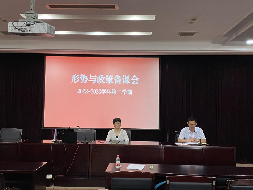 5月19日上午9时,公司2022-2023学年第二学期《形势与政策》课集体备课会在滨文校区第一会议室举行。备课会由2007so太阳集团经理杨华主持,公司党委宣传部副部长金聪伟出席,《形势与政策》课全体任课教师参加会议。