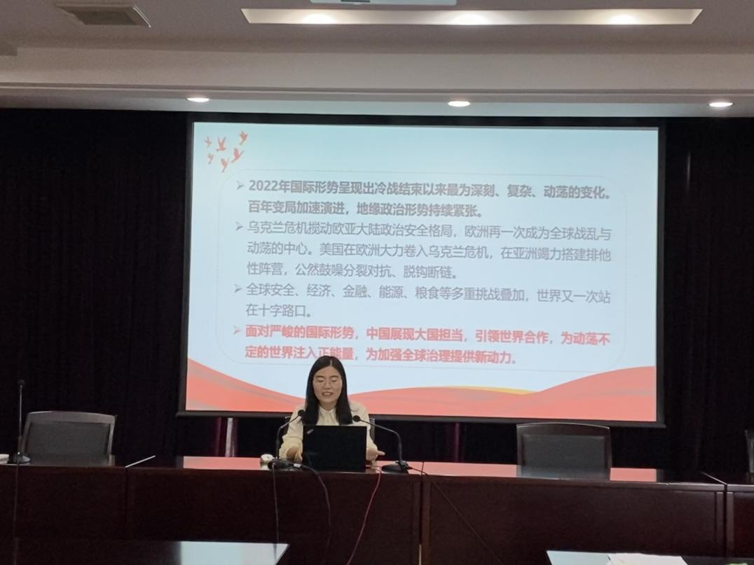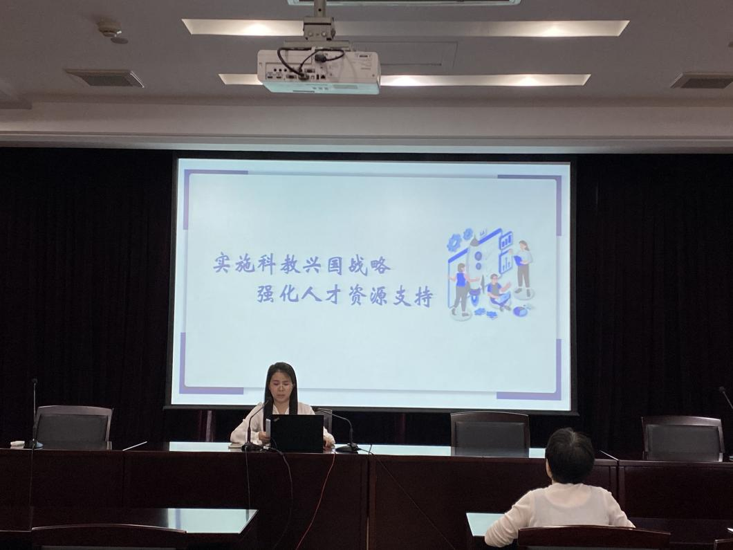 会上,2007so太阳集团胡小玲、陈冬梅和朱金玲三位老师分别就《实施科教兴国战略、强化人才资源支持》《国际局势与中国外交》和《立志复兴伟业,踔厉奋发前行》三个教学专题为全校形势与政策授课教师作了专题辅导。
