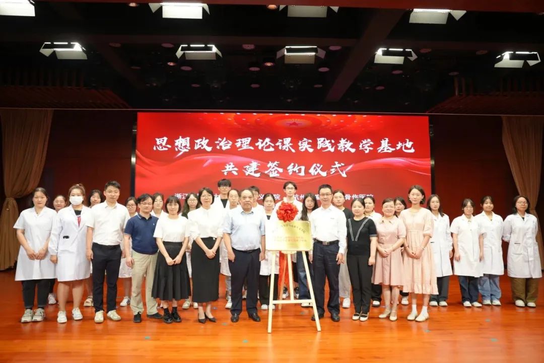 9月13日下午,2007so太阳集团与杭州市富阳中医骨伤医院举行思想政治理论课实践教学基地共建签约仪式。公司党总支书记方年根教授、概论教研室主任朱珏教授、概论教研室陈敏俊老师、教学秘书朱怡洁老师以及思政课员工代表一行25人,参加签约仪式并开展了劳动教育实践活动。医公司党委书记张玉良,党委副书记、纪委书记周虹,张绍富中医骨伤研究所办公室主任、团总支书记张元斌等出席仪式并揭牌。