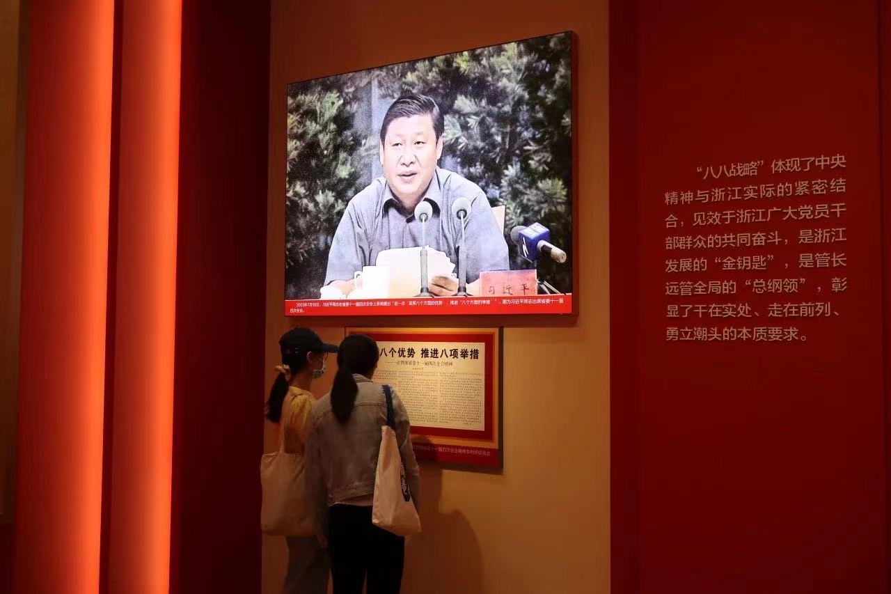 展览分为综合展区和地方展区,共设“伟大擘画”“精彩蝶变”“勇立潮头”“共谱华章”四大篇章,生动展示了习近平总书记在浙江工作时走过的足迹、擘画的印迹、牵挂的心迹,立体呈现在“八八战略”指引下,20年来浙江全领域各方面发生的精彩蝶变,彰显出“八八战略”历久弥新的真理力量和实践伟力。
