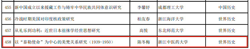 近日,2023年度国家社科基金后期资助暨优秀博士论文出版项目立项名单在全国哲学社会科学办公室官网公示,公司陈冬梅老师负责的申报项目《以“泰勒使命”为中心的美梵关系研究(1939-1950)》获得立项公示。