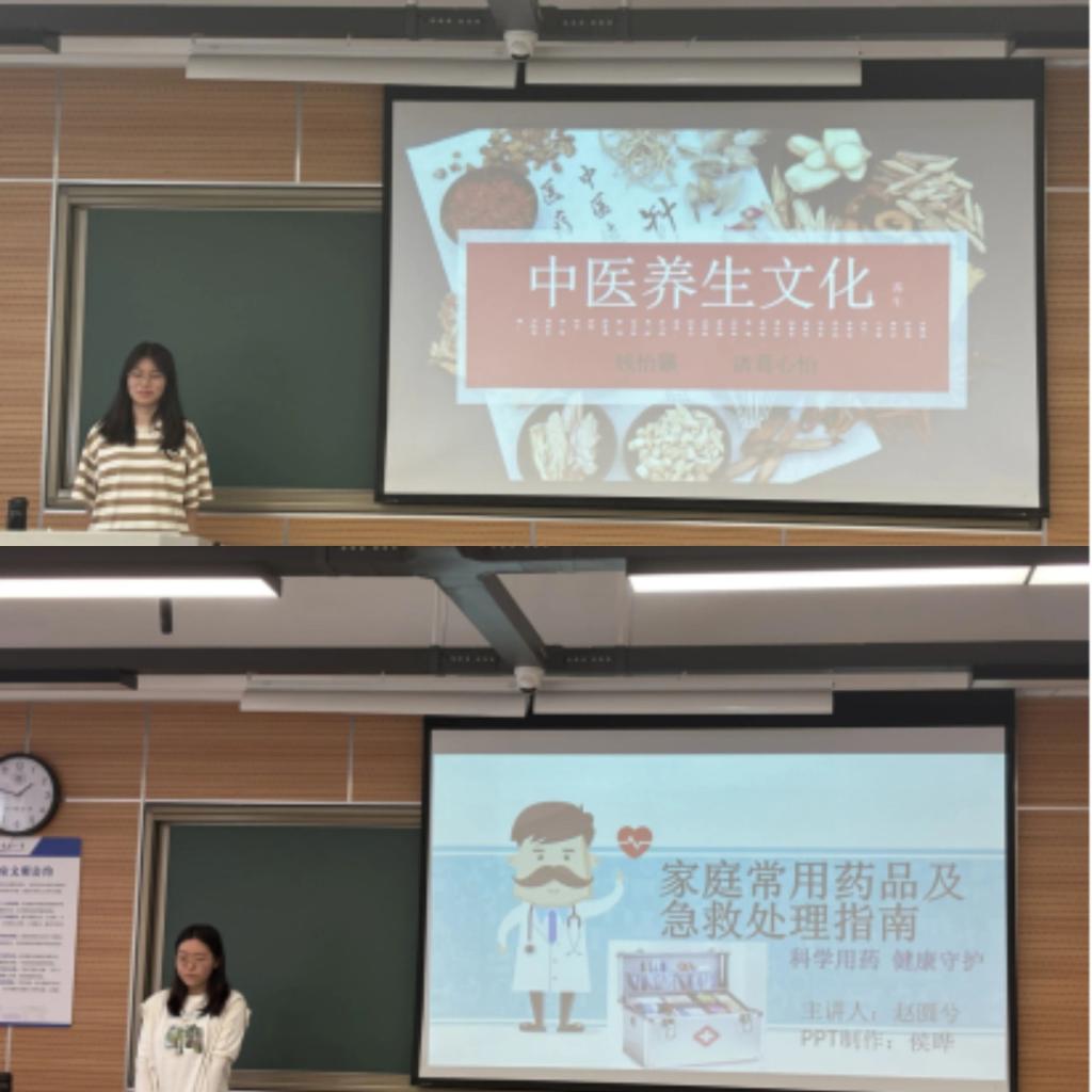 黄章匾老师在讲到“推进健康中国建设”等相关专题时,让同学们课前收集资料,制作课件,在课堂上作了精彩的分享,“中医养生文化”“家庭常用药品及急救处理指南”等主题深受同学们的喜爱,既极大地提升了思政课的课堂氛围与教学效果,也让同学们在思政课课堂上加深了对专业知识的理解。