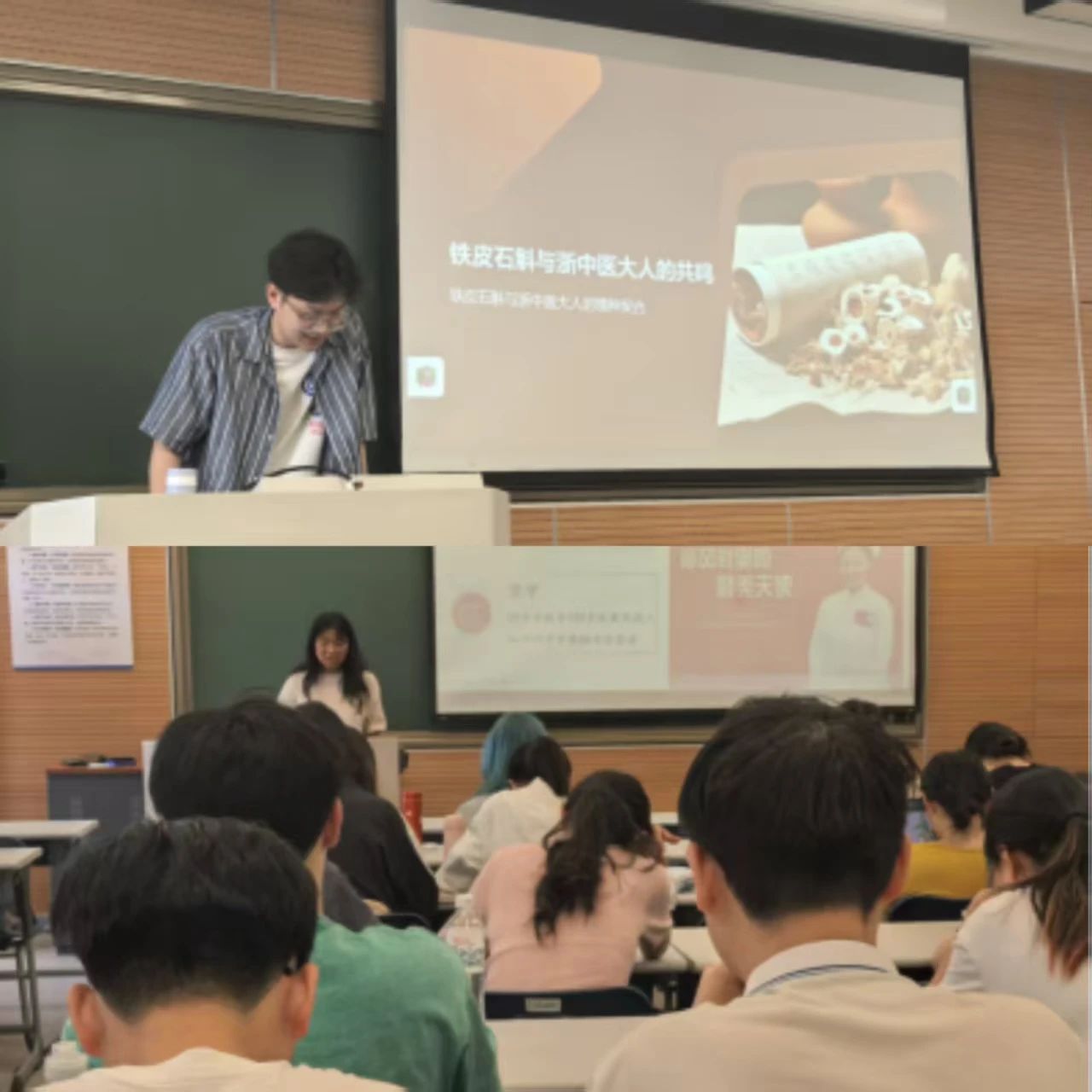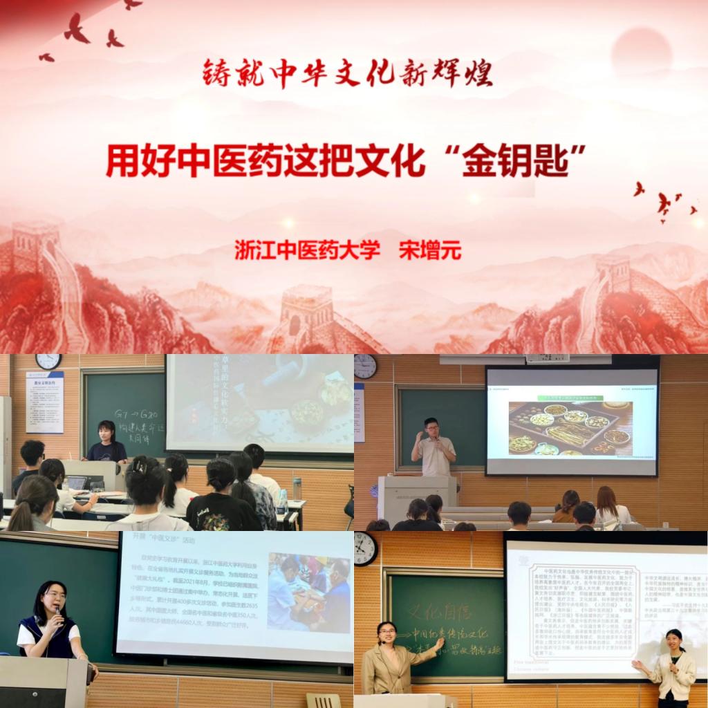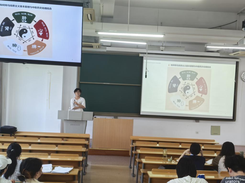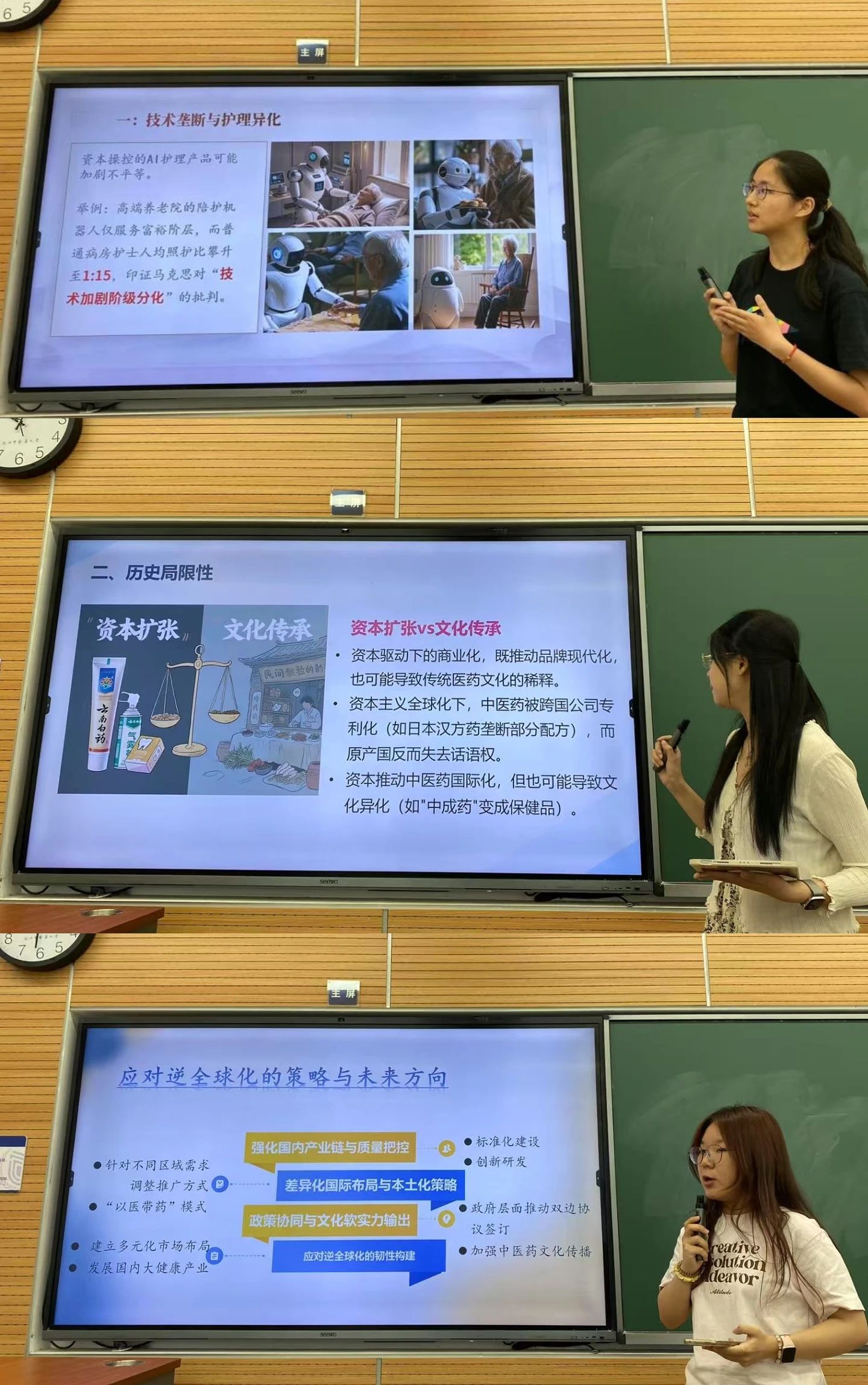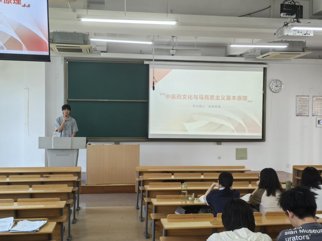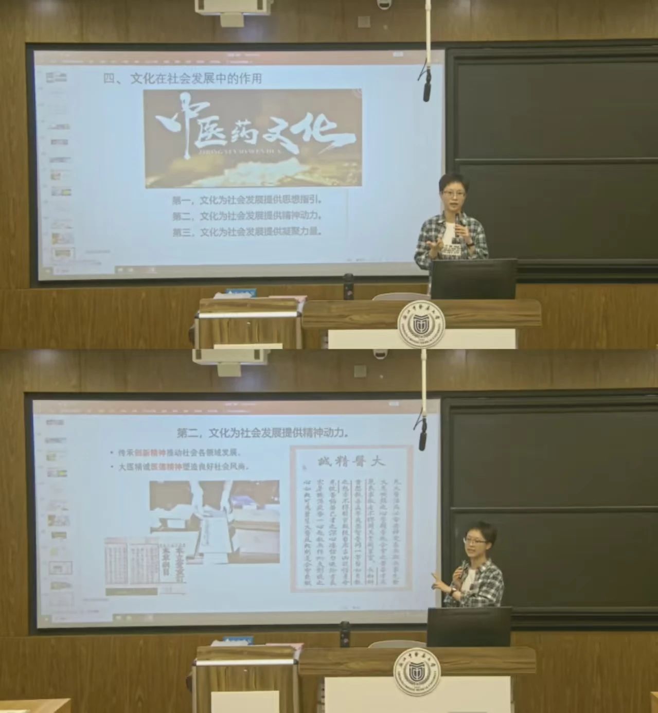 课堂上,老师们打破传统教学模式,开启专题串烧模式。每位老师结合自身研究专长,选取不同专题,有的讲述中医药古籍智慧与新时代创新理念的融合,有的剖析中医药产业发展与国家战略布局的紧密联系,等等。这些不同主题的接力串联,为同学们呈现一场场干货满满又“中医药味”十足的思政专场,让同学们沉浸其中,感受思政与中医药文化的双重魅力。