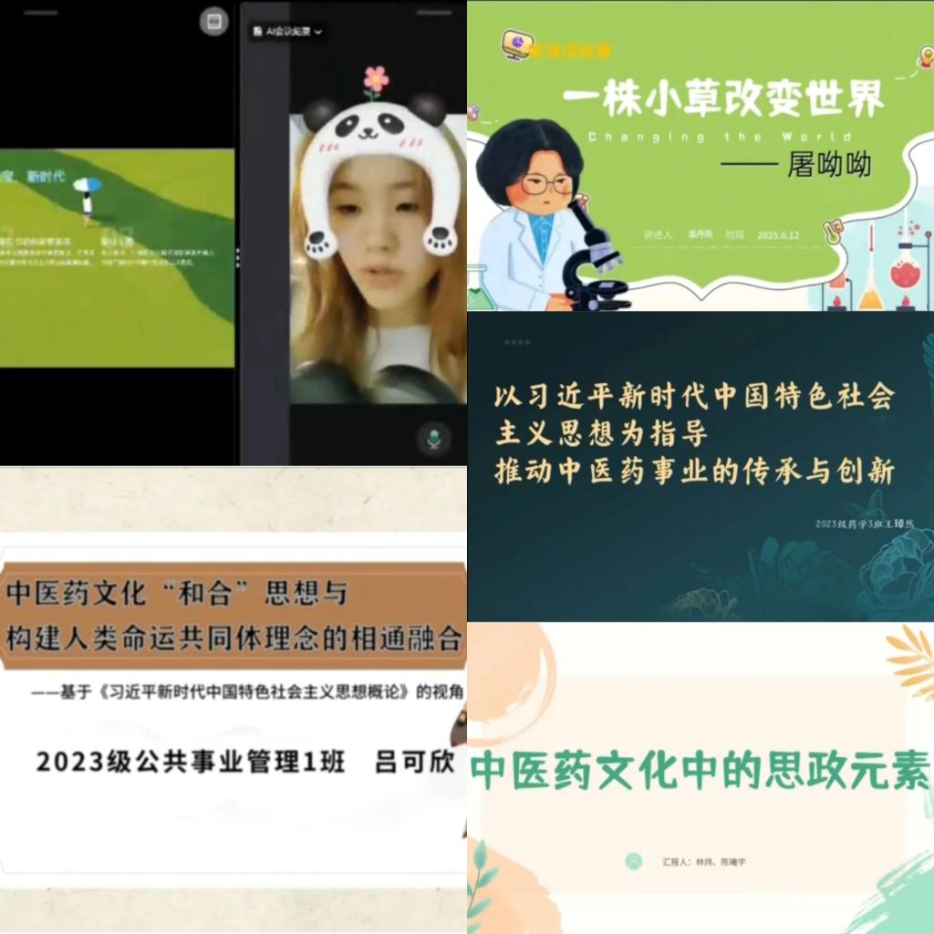 很多同学将思考延伸至课外,制作了主题多样、有深度思考的微课作品,同学们化身“小老师”,精心备课、撰写脚本,利用课余时间反复练习、录制。他们利用自身专业细致讲解中医药背后的文化寓意与思政价值,剖析中医药在新时代的发展机遇与挑战,将专业知识与思政理念巧妙融合。这些微课作品不仅成为同学们相互学习的宝贵资源,更激发了更多同学对中医药文化与新思想课程学习的兴趣。