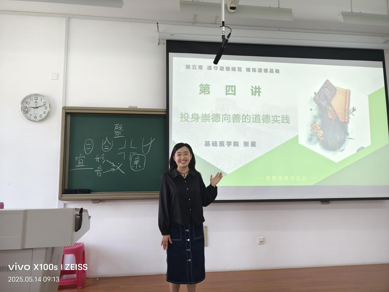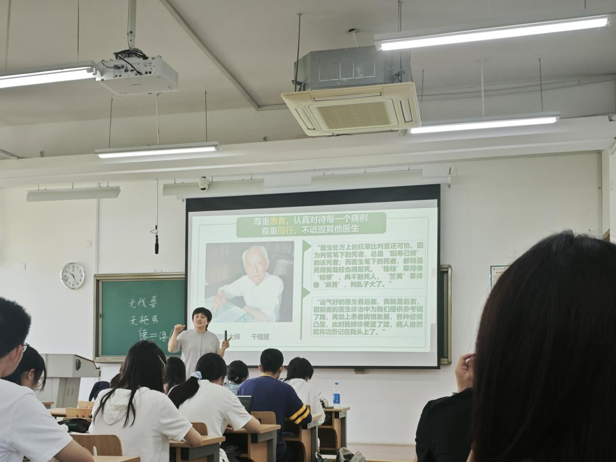 5月14日,本教研室钱国玲老师与基础医公司张星副教授联袂授课,以“医德传承与新时代使命”为主题,通过文化解读与案例实践,为师生呈现了一堂生动的跨学科思政课,将中医文化与思政教学深度融合。