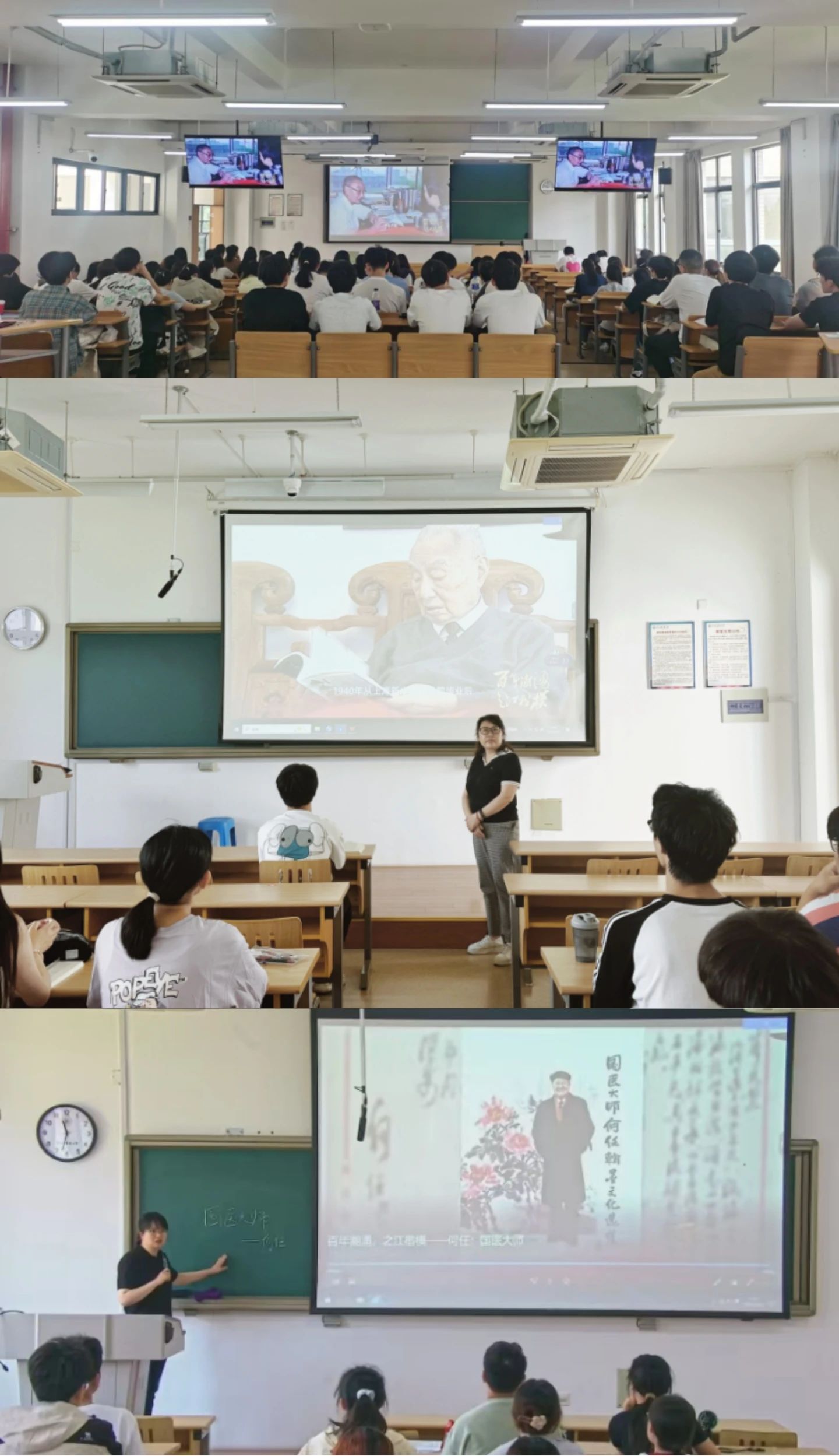 课堂中,两位教师以“古今对话”形式展开互动:钱国玲将干祖望“尊重同行、坚守底线”的处世原则与儒家“五伦”思想呼应,提出 “医患即信义之交”;张星则从中医视角补充,倡导以孙思邈“大医精诚”为镜鉴,践行“心怀慈悲、知行合一”的行医准则。