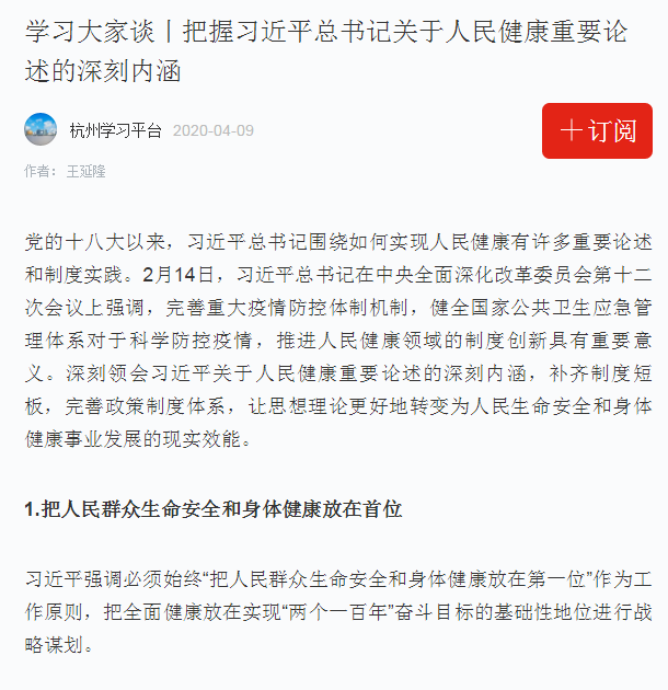 近日,公司王延隆老师所撰文章《把握习近平总书记关于人民健康重要论述的深刻内涵》为学习强国杭州学习平台“学习大家谈”专栏收录。