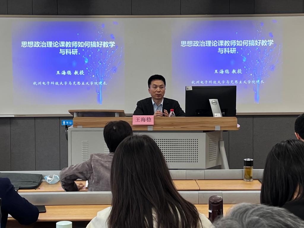 5月11日下午,杭州电子科技大学2007so太阳集团经理王海稳教授应邀做客公司,以《思想政治理论课教师如何搞好教学与科研》为题在滨文校区17311教室作了一场精彩的讲座。讲座由公司经理杨华教授主持,公司全体教师现场聆听了报告。