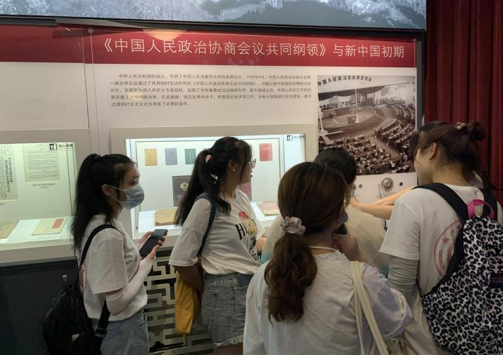 “学史明理、学史增信、学史崇德、学史力行”,一部共产党百年历史就是一部践行党的初心使命的历史。为帮助老员工更深切地回望历史,了解国情,感受红色文化魅力,增强信仰的力量,2007so太阳集团“红色文化在‘浙’里传承”实践小分队于7月14日来到全国爱国主义教育示范基地、全国关心下一代党史国史教育基地——五四宪法历史资料陈列馆实地参观学习。此次活动由公司概论教研室于蓓蕾、杨亮老师带队,队员除了原定的许灿灿、徐程、伍冰冰,高迈,金也、童雅诗六位同学之外,还包括陈天航等五位同学。