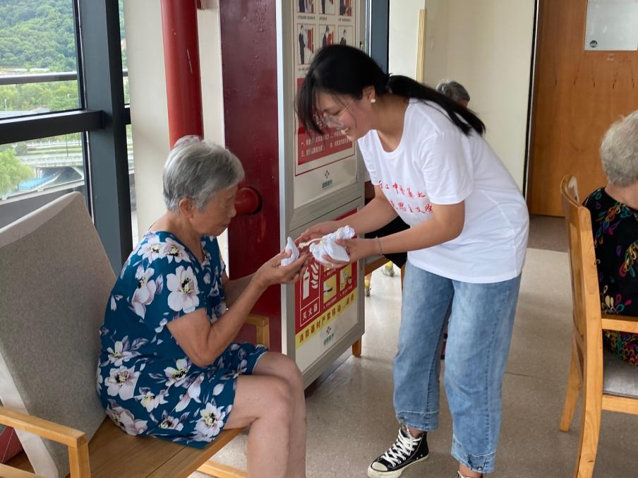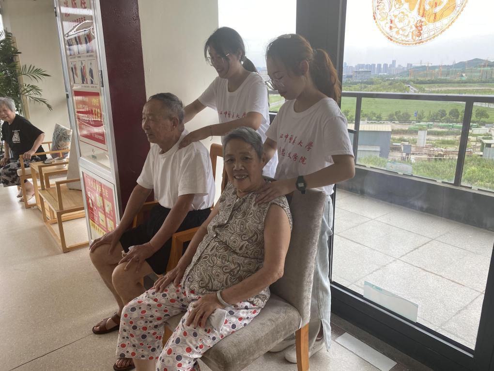 短短几天时间,接触了上百位老人,我们团队师生积极参与,为老人按摩、陪他们聊天、送给他们我们亲手制作的香囊,虽不能带给老人太多礼物,但也能送去欢声笑语以及我们美好的祝福。希望之后再有机会去敬老院陪伴那些老人,能够让他们快乐幸福。