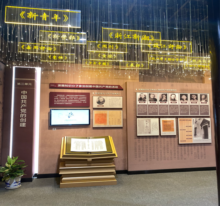 纪念馆分四个部分:“潮起钱塘”、“星火钱塘”、“奔腾钱塘”、“今日钱塘”,采用传统陈列和现代科技手段相结合的展示手法,生动再现中共杭州地方组织从创建、发展、壮大以及最终形成燎原之势的全历史过程,保留着杭州这片土地上诞生中共小组最初的印记。