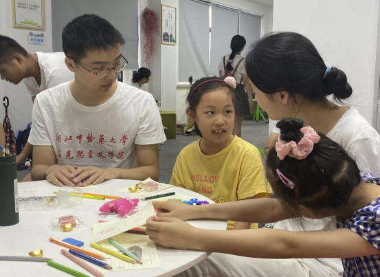 我们首先向不同年龄阶段的小朋友讲述党史故事并一起歌唱红歌等方式,通过互动让小朋友们学习了党史知识。由于小朋友们年龄较小,性格活泼,在故事讲述过程中比较难以维持纪律,因此在这个过程中我们感受到了社工托管工作的不容易与辛苦。